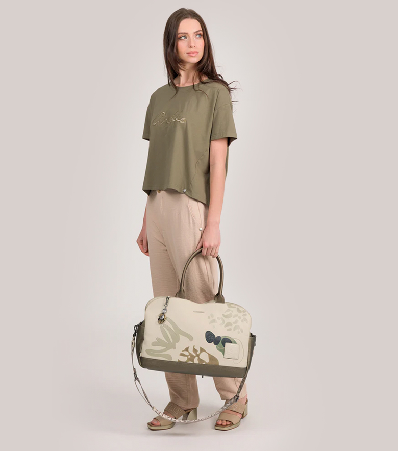 • skład: tkanina, imitacja skóry z nadrukiem, hafty, naszywki