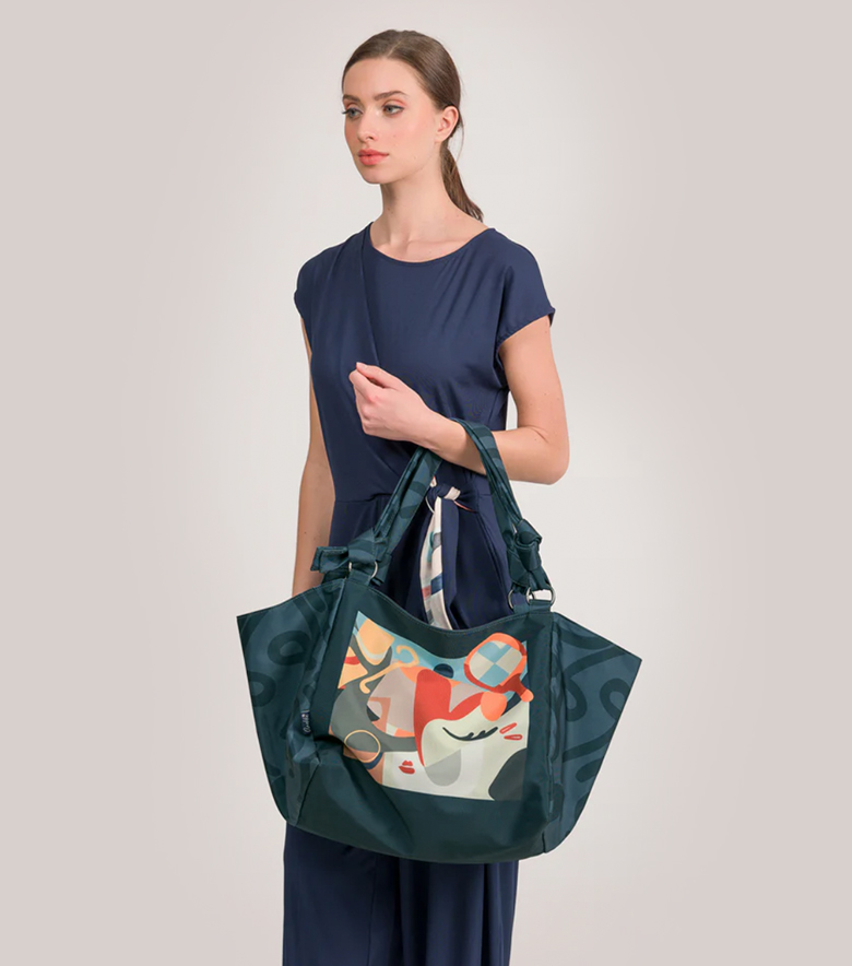 • wewnątrz drukowana tkanina, nawiązująca kolorystycznie i tematycznie do strony zewnętrznej