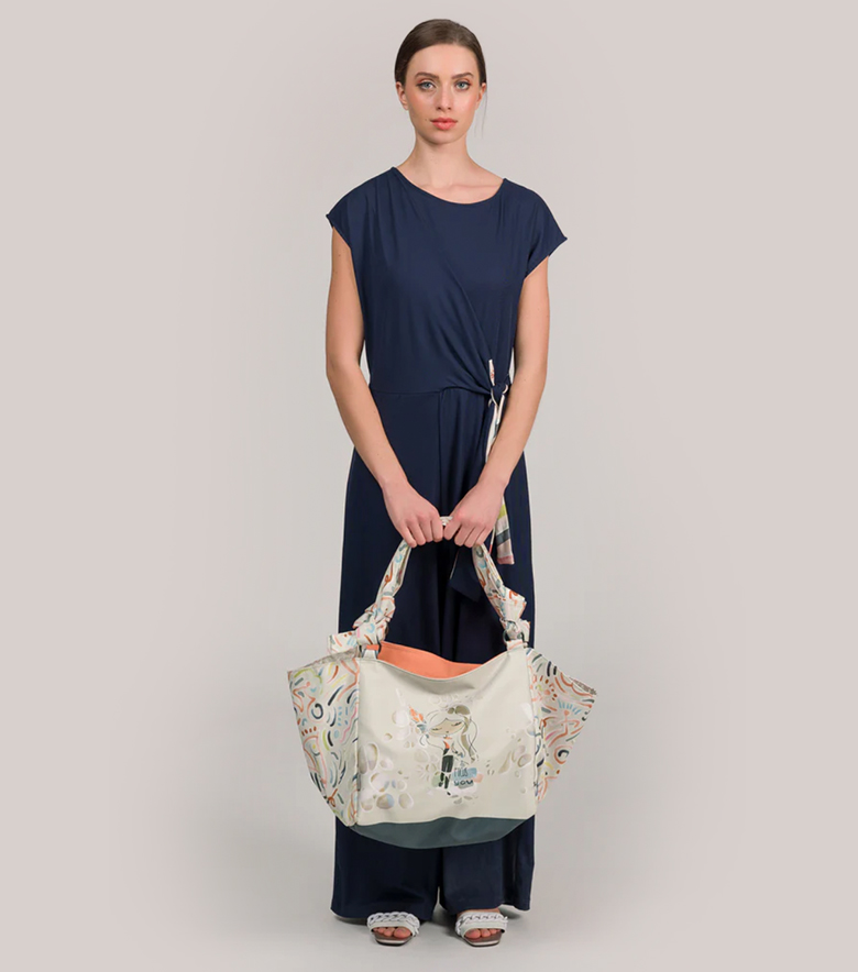 • wewnątrz drukowana tkanina, nawiązująca kolorystycznie i tematycznie do strony zewnętrznej