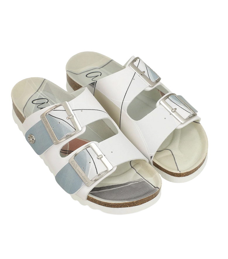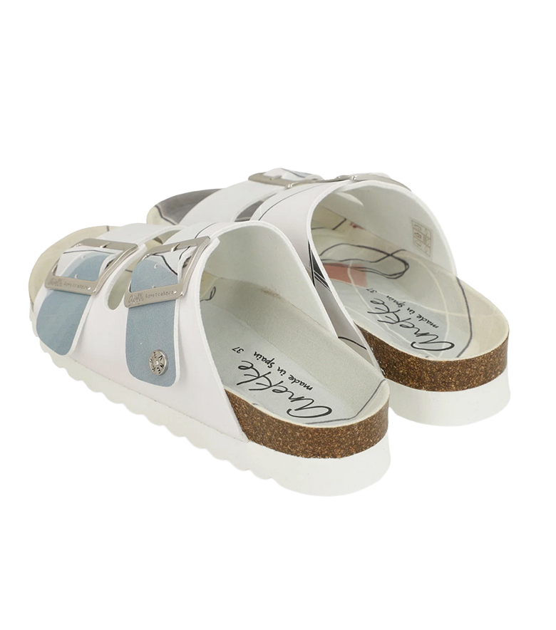 • skład: skóra naturalna; wkładka skóra naturalna; podeszwa korek + tworzywo; klamra metal